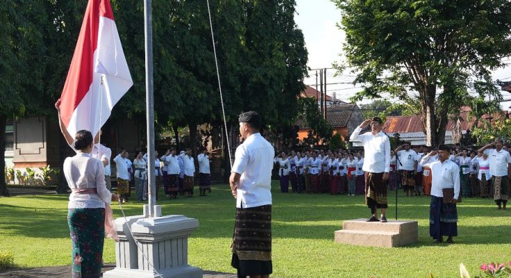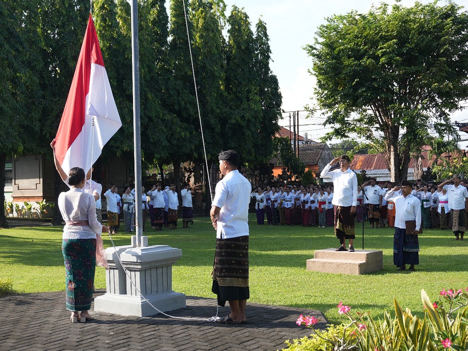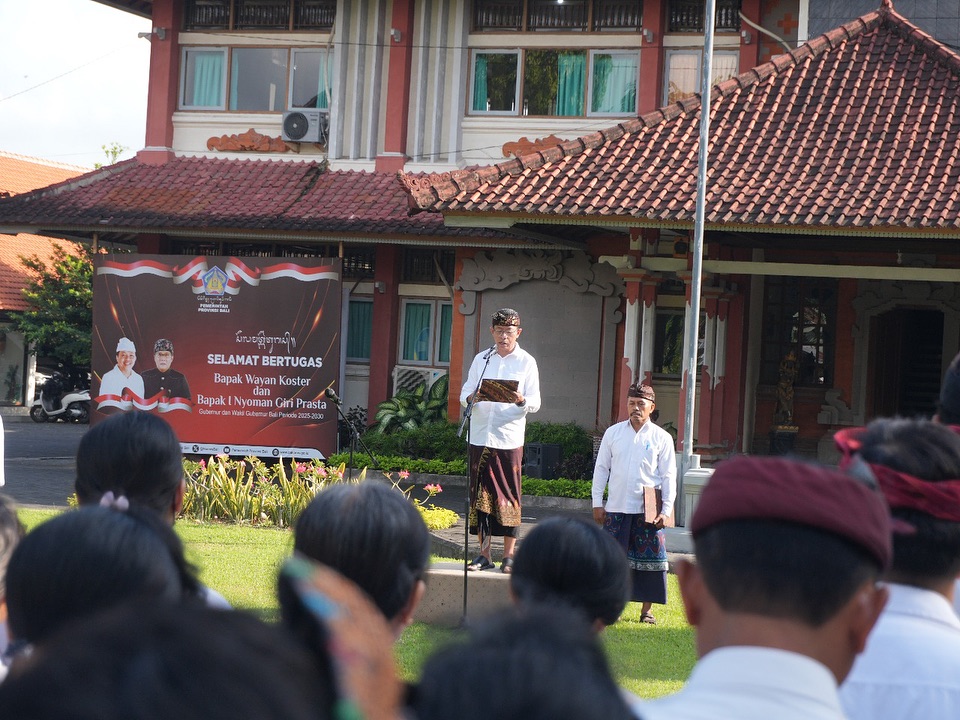 Dinas Koperasi & UKM dan Dinas Pertanian & Ketahanan Pangan Provinsi Bali dalam pelaksanaan Upacara Bendera memperingati Hari Kebangkitan Nasional ke-117 Tahun 2025, pagi tadi (20/5) di Lapangan DiskopUKM Prov. Bali.