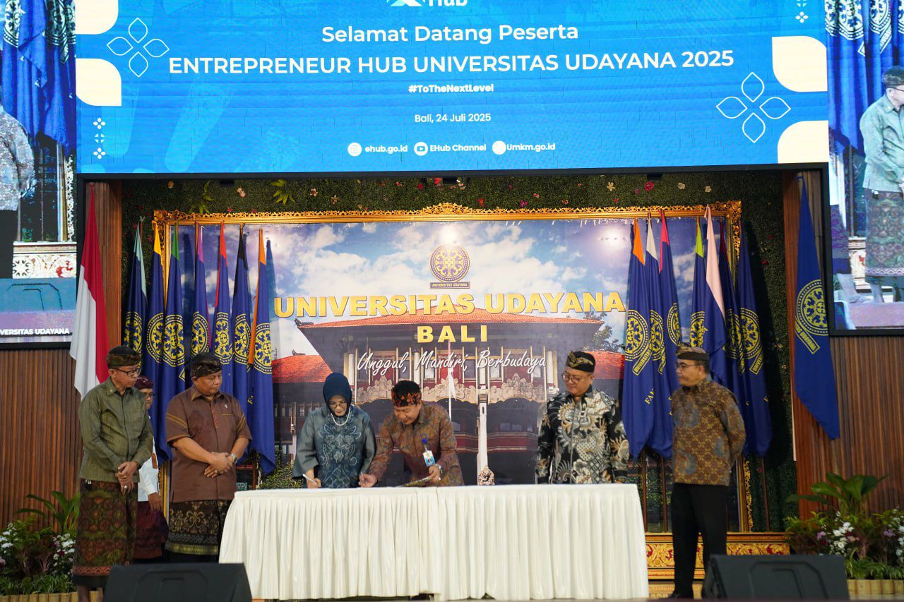 Bali, 24 Juli 2025 – Bertempat di Gedung Widya Sabha, Kampus Bukit Jimbaran Universitas Udayana, kegiatan Entrepreneur Hub Universitas Udayana resmi dibuka oleh Wakil Menteri Koperasi dan UKM Republik Indonesia, Helvi Fahrudin. Mengusung tema “Kampus Berdampak, Wirausaha Berdaya”, acara ini menjadi momentum penting dalam memperkuat ekosistem kewirausahaan di lingkungan perguruan tinggi, khususnya di Bali.