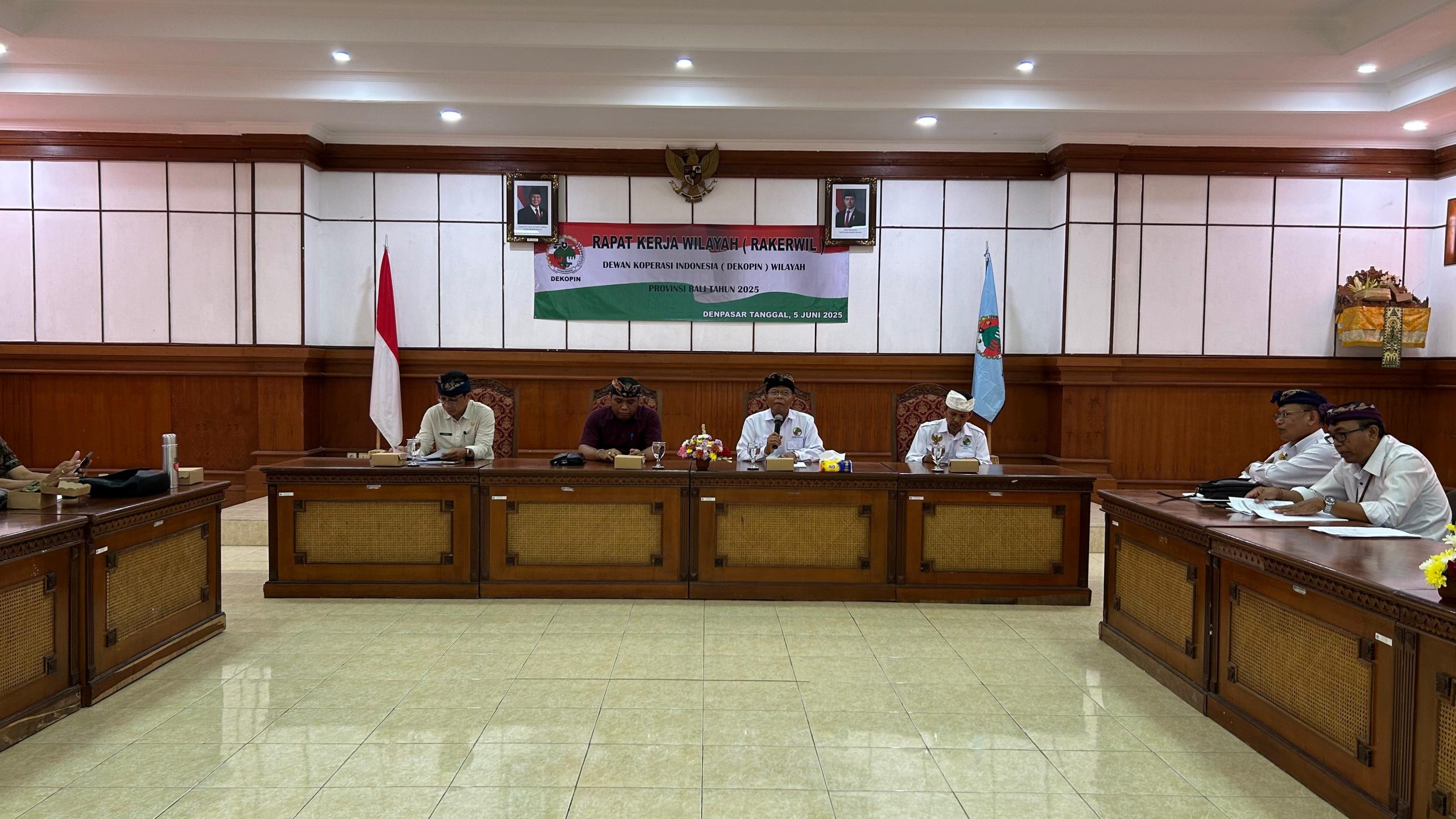 Sekretaris Dinas Koperasi dan UKM Provinsi Bali, I Ketut Meniarta, SSTP.,M.Si didampingi Kepala Bidang Kelembagaan dan Pemberdayaan Koperasi hadir memberikan sambutan dalam acara Rapat Kerja Wilayah (Rakerwil) Dekopinwil Provinsi Bali Tahun 2025, bertempat di Ruang Rapat Melati Dinas Koperasi dan UKM Provinsi Bali pada Kamis (5/6). Hadir dalam Rakerwil ini sebanyak 80 Gerakan Koperasi Binaan Provinsi Bali serta Dekopinda Kabupaten/Kota se-Bali.