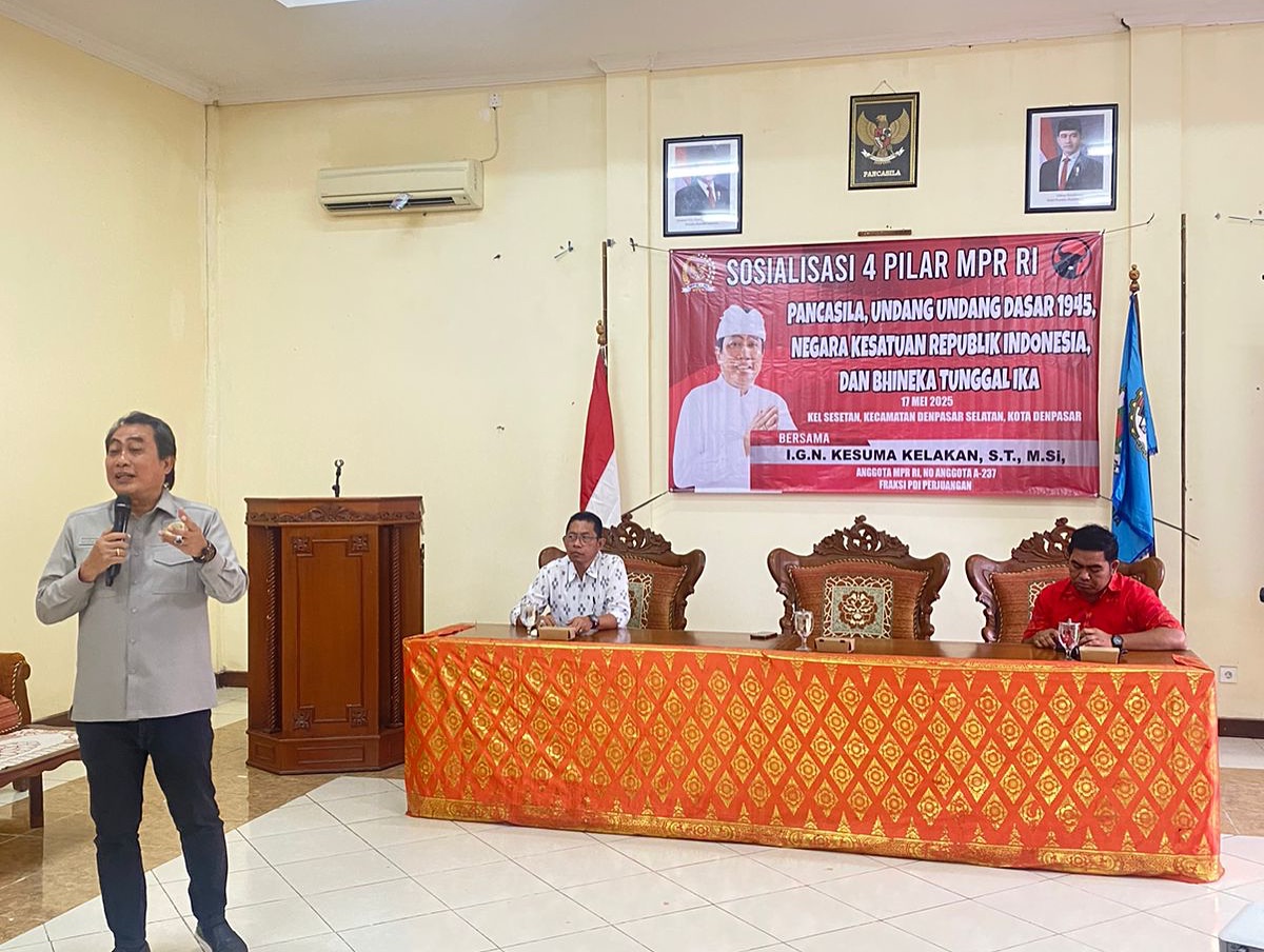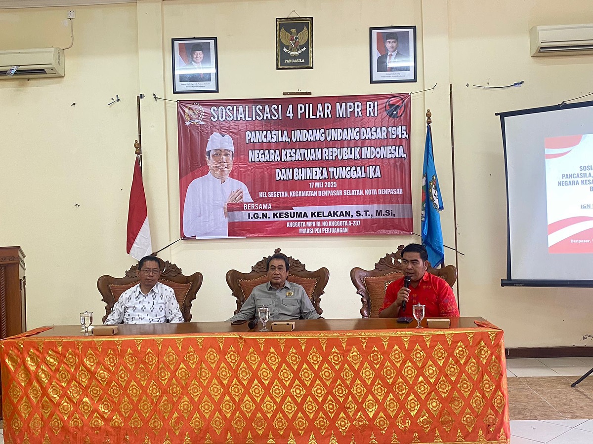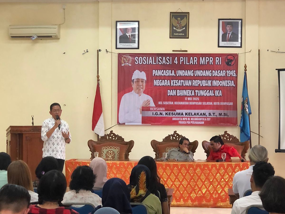 Semangat kebangsaan dan kewirausahaan berpadu dalam acara sosialisasi 4 Pilar Kebangsaan dan Program Koperasi Desa/Kelurahan Merah Putih yang diselenggarakan khusus untuk para pelaku Usaha Mikro, Kecil, dan Menengah (UMKM). Kegiatan yang dihadiri oleh 100 UMKM ini dilaksanakan di Gedung PLUT KUMKM siang tadi (17/5). Sosialisasi ini diisi oleh dua narasumber yakni IGN Kesuma Kelakan, anggota Komisi VI DPR RI dan KadisKop UKM Prov. Bali , Tri Arya Dhyana Kubontubuh..