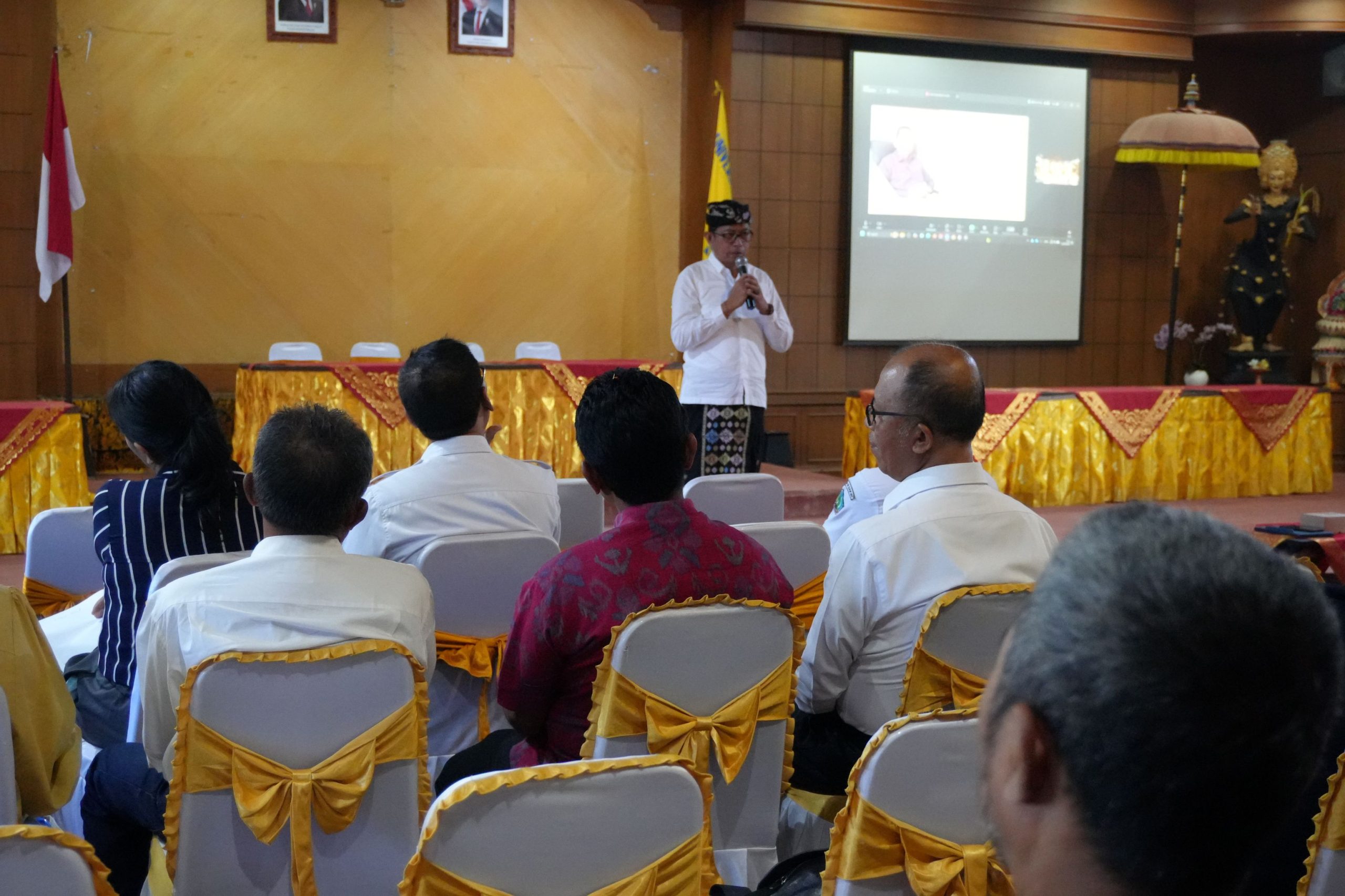 Dalam sesi materi pertama, Kepala Dinas Koperasi dan UKM Provinsi Bali, Tri Arya Dhyana Kubontubuh, memaparkan mengenai tata kelola KDKMP. Ia menegaskan bahwa Koperasi Desa Merah Putih merupakan program strategis yang mendapat perhatian khusus dari pemerintah pusat maupun daerah. “KDKMP telah masuk dalam kebijakan Asta Cita Presiden dan di Bali menjadi salah satu program prioritas Nangun Sat Kerthi Loka Bali. Namun tantangan terbesar saat ini adalah pada tahap operasional, di mana dari 716 KDKMP yang terbentuk, belum seluruhnya beroperasi,” jelasnya.